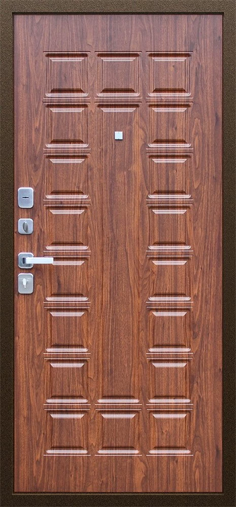 Надежная входная Дверь Спартак Орех темный премиум класса по цене 34 271 руб. Большая толщина стали защитит от проникновения в ваш дом, квартиру или коттедж. Используется очень качественная фурнитура: замки, цилиндры, ручки, защелки. Покрытие и отделка двери изготовлено под внимательным контролем производителя. Дверь имеет долгий срок службы и гарантию.